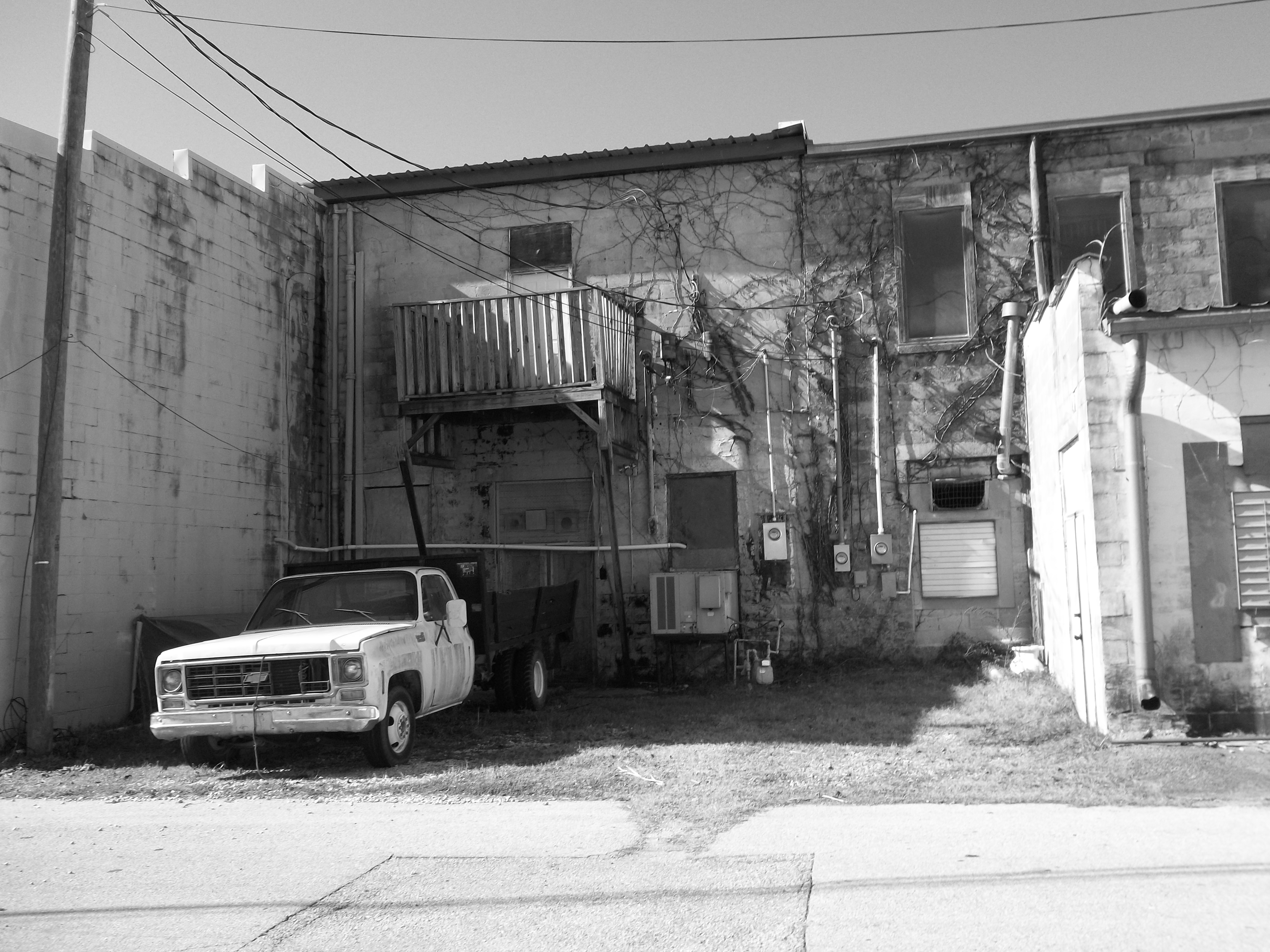Truck in front of a building