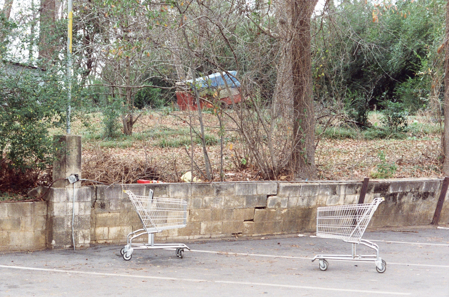 Shopping carts in a parking lot