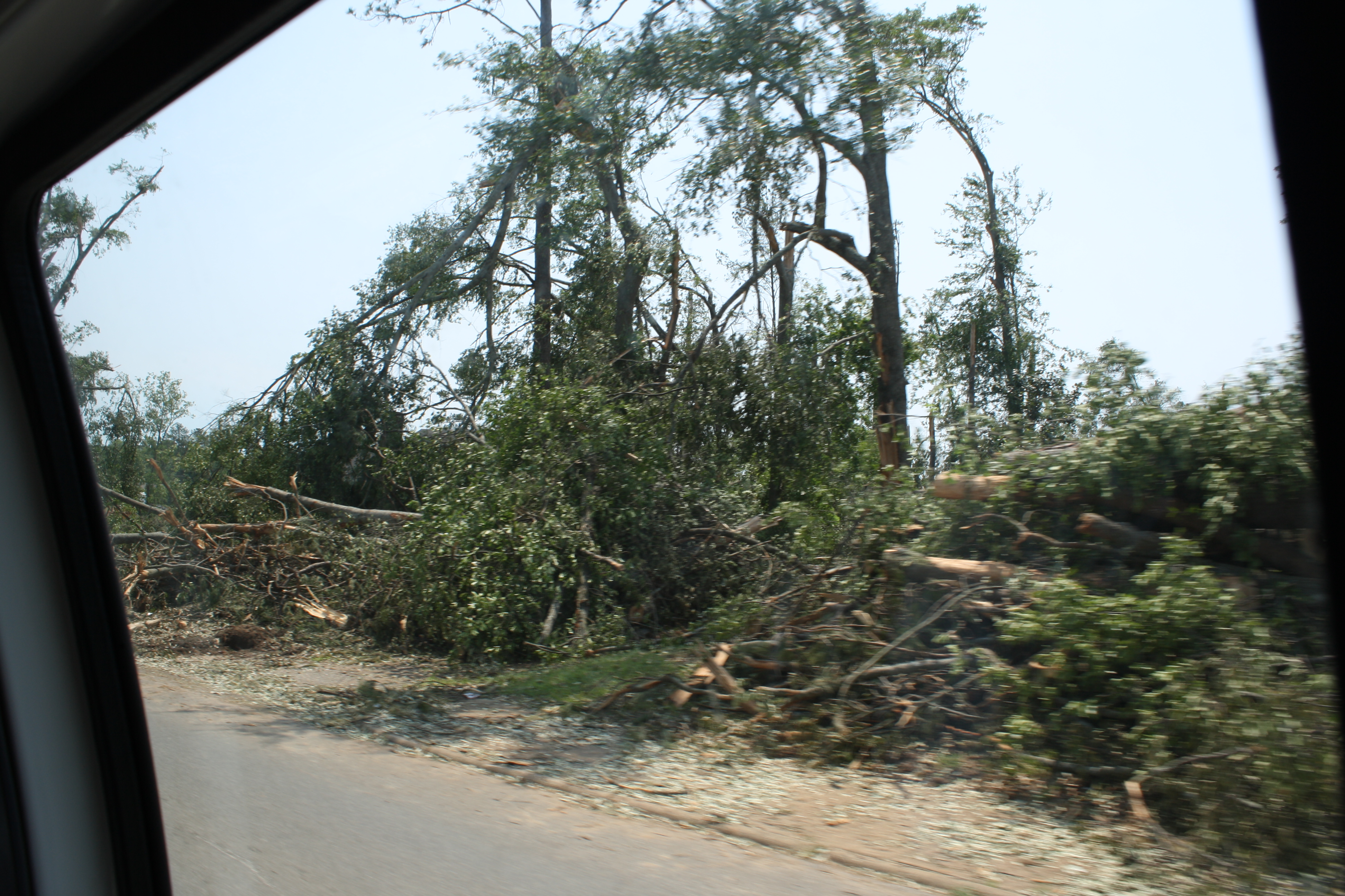 Fallen trees outside a window