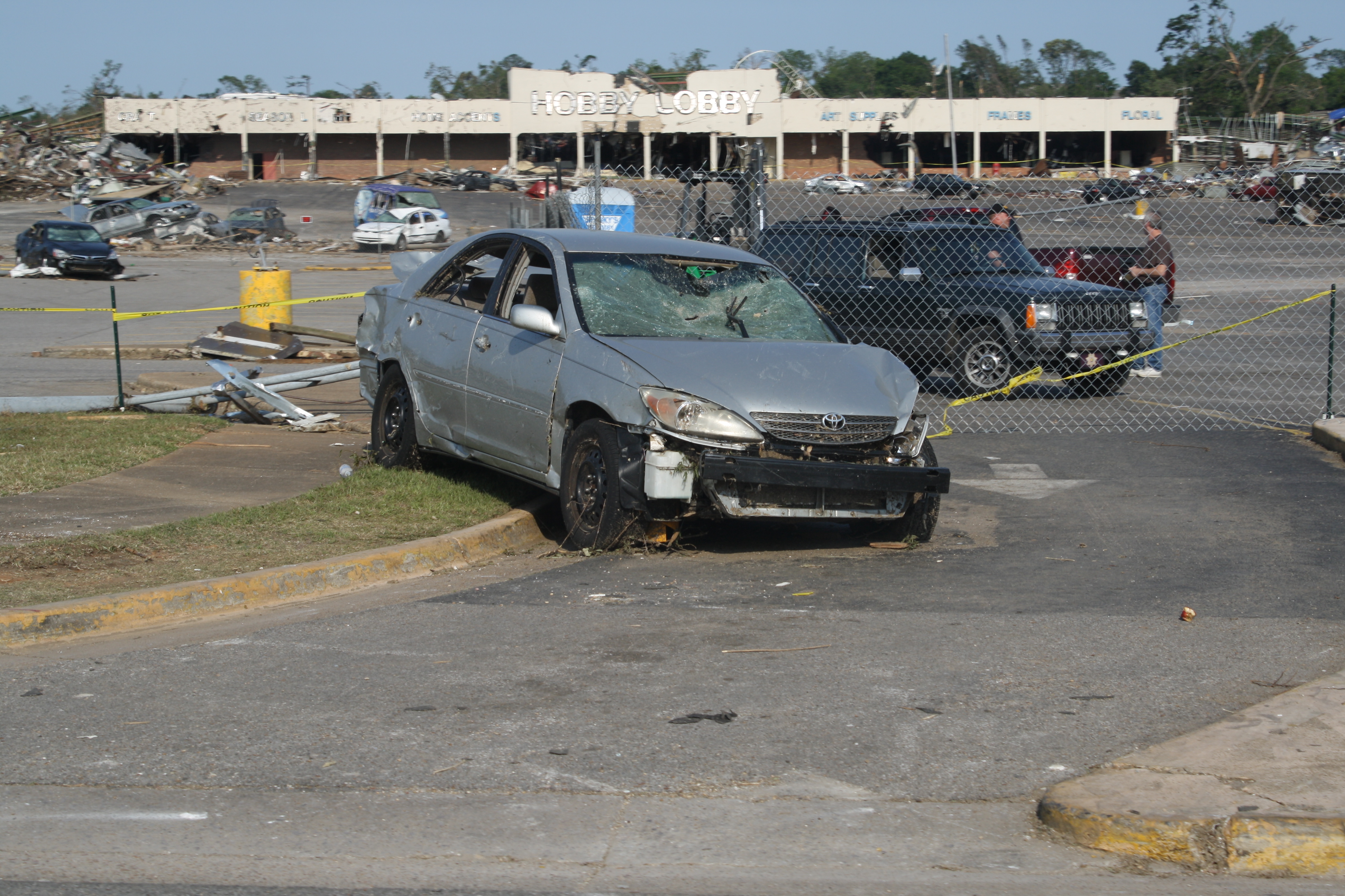 Cars damaged from tornado near Hobby Lobby