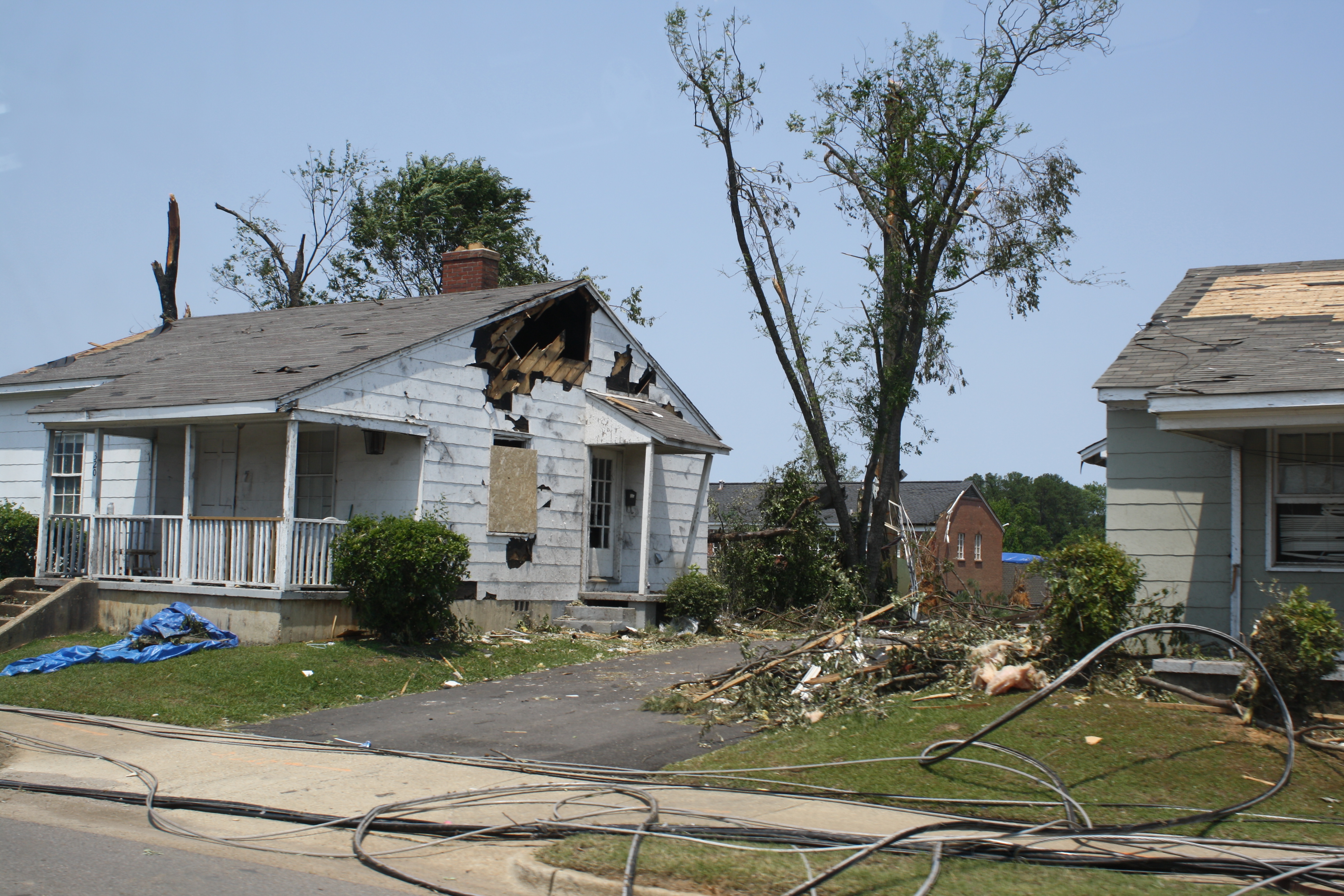 Tornado damage in residential area