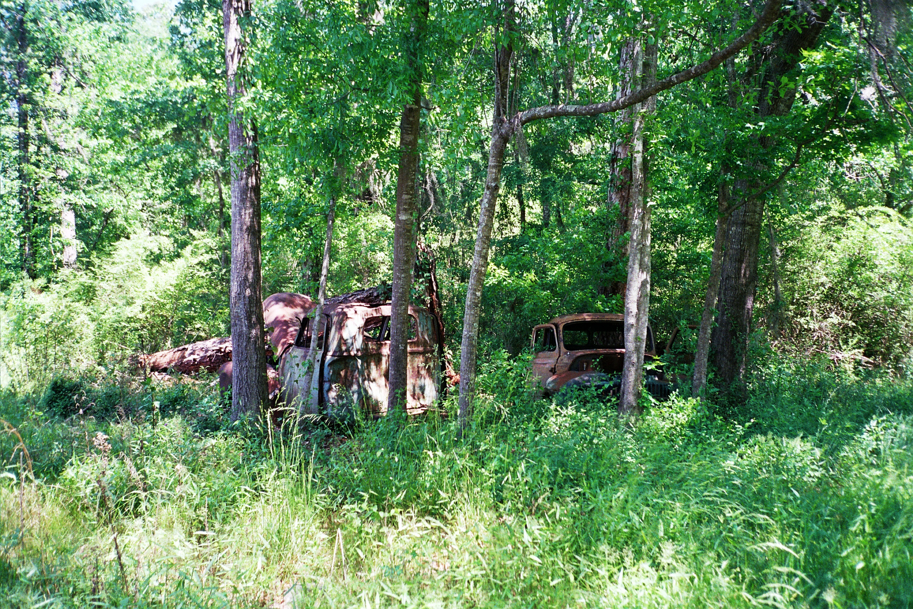 Old trucks in trees