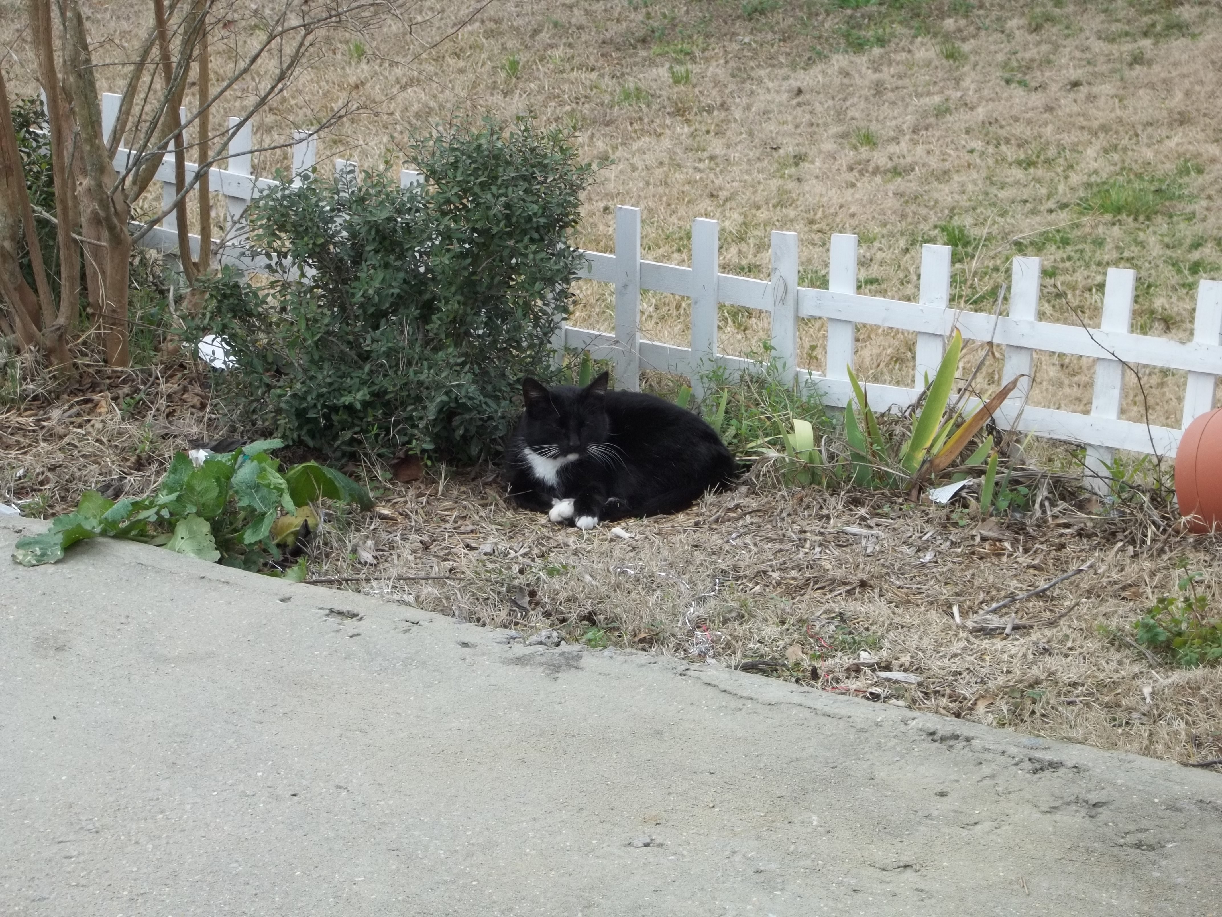 Cat laying in yard