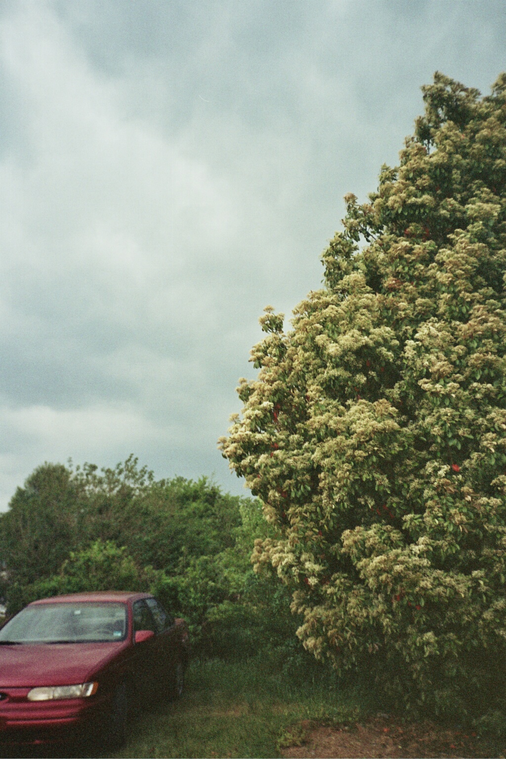Car parked by a tree
